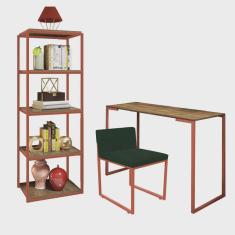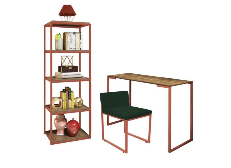 O menor preço encontrado no Brasil para Kit Escritório Ravi 1 Cadeira Suede Verde com 1 Mesa e 1 Livreiro Ferro Bronze MDF Caramelo - Ahazzo Móveis atualmente é R$ 1.369,90.