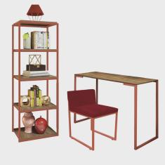O menor preço encontrado no Brasil para Kit Escritório Ravi 1 Cadeira Suede Vermelho com 1 Mesa e 1 Livreiro Ferro Bronze MDF Malbec - Ahazzo Móveis atualmente é R$ 1.369,90.