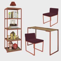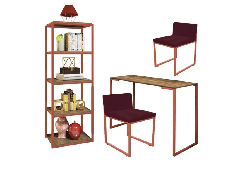 O menor preço encontrado no Brasil para Kit Escritório Ravi 2 Cadeiras Suede Bordô com 1 Mesa e 1 Livreiro Ferro Bronze MDF Caramelo - Ahazzo Móveis atualmente é R$ 1.709,90.