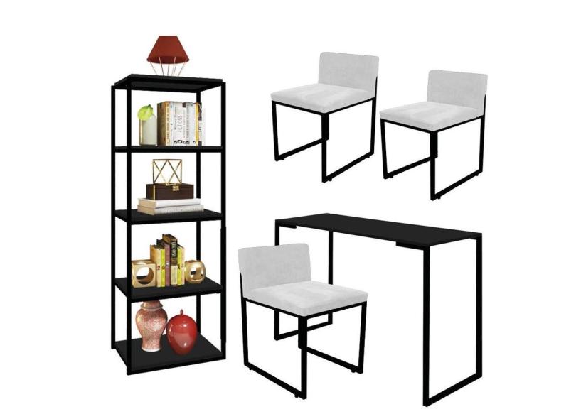 O menor preço encontrado no Brasil para Kit Escritório Ravi 3 Cadeiras Suede Branco com 1 Mesa e 1 Livreiro Ferro Preto MDF Preto - Ahazzo Móveis atualmente é R$ 1.909,90.