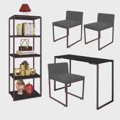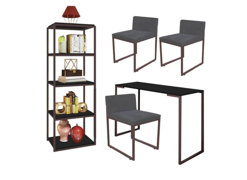 O menor preço encontrado no Brasil para Kit Escritório Ravi 3 Cadeiras Suede Cinza com 1 Mesa e 1 Livreiro Ferro Marrom MDF Preto - Ahazzo Móveis atualmente é R$ 1.909,90.