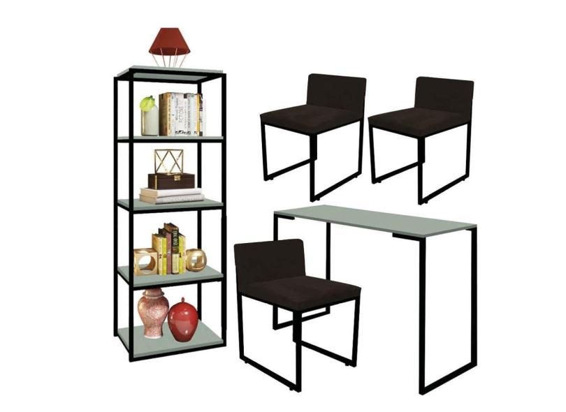 O menor preço encontrado no Brasil para Kit Escritório Ravi 3 Cadeiras Suede Marrom com 1 Mesa e 1 Livreiro Ferro Preto MDF Verde Oliva - Ahazzo Móveis atualmente é R$ 1.909,90.