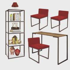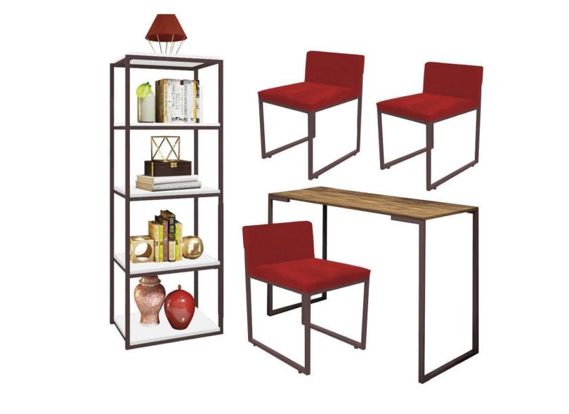 O menor preço encontrado no Brasil para Kit Escritório Ravi 3 Cadeiras Suede Vermelho com 1 Mesa e 1 Livreiro Ferro Marrom MDF Malbec - Ahazzo Móveis atualmente é R$ 2.049,90.