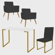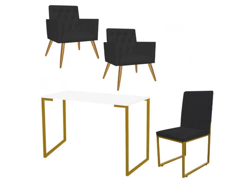 O menor preço encontrado no Brasil para Kit Escritório Stan 2 Poltronas Capitonê com Cadeira e Mesa Industrial Branco Dourado Tecido Sintético Preto - Ahz Móveis atualmente é R$ 1.599,90.