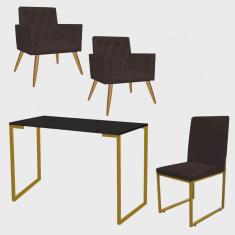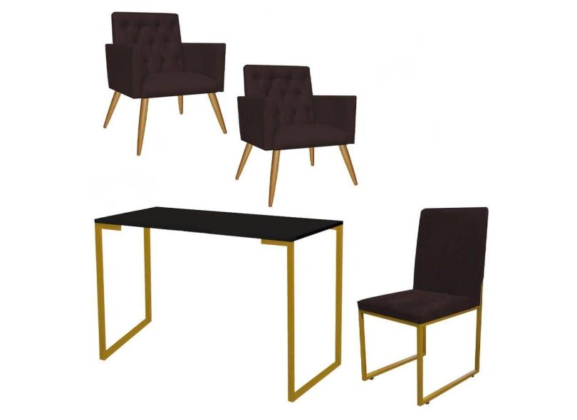 O menor preço encontrado no Brasil para Kit Escritório Stan 2 Poltronas Capitonê com Cadeira e Mesa Industrial Preto Dourado Suede Marrom - Ahz Móveis atualmente é R$ 1.599,90.