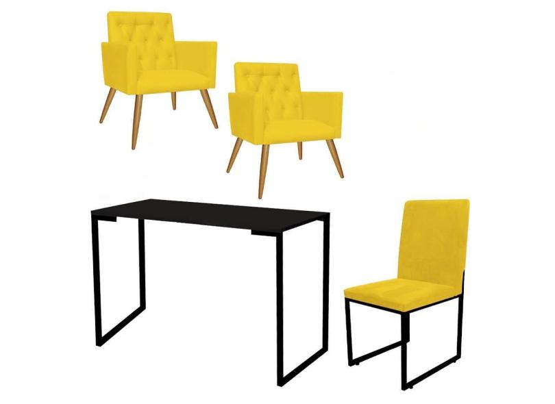 O menor preço encontrado no Brasil para Kit Escritório Stan 2 Poltronas Capitonê com Cadeira e Mesa Industrial Tampo Preto Tecido Sintético Amarelo - Ahz Móveis atualmente é R$ 1.599,90.