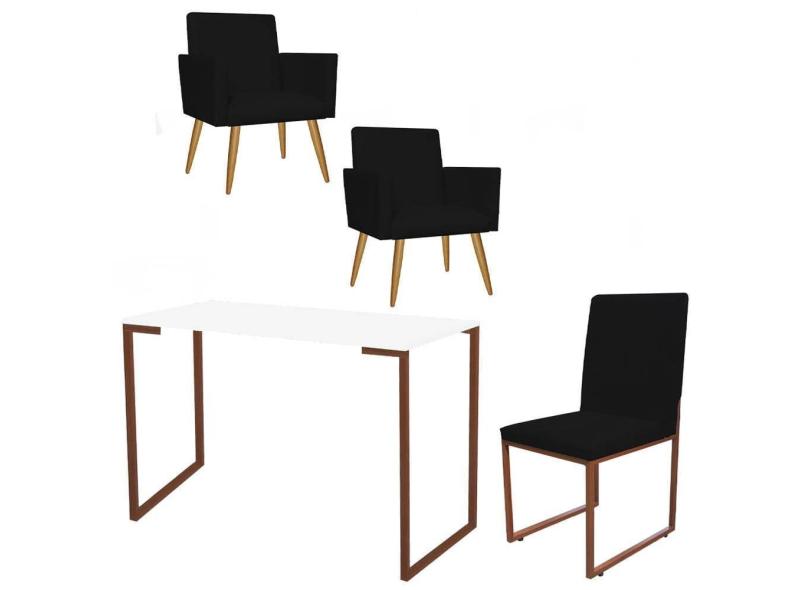 O menor preço encontrado no Brasil para Kit Escritório Stan 2 Poltronas com Cadeira e Mesa Industrial Tampo Branco Bronze Corino Preto - Ahz Móveis atualmente é R$ 1.439,90.