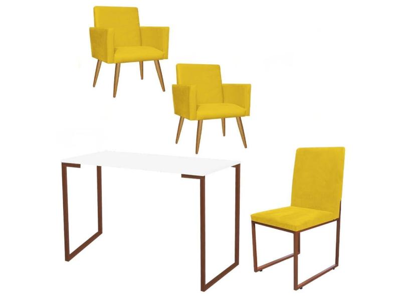 O menor preço encontrado no Brasil para Kit Escritório Stan 2 Poltronas com Cadeira e Mesa Industrial Tampo Branco Bronze Tecido Sintético Amarelo - Ahz Móveis atualmente é R$ 1.439,90.