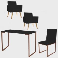 O menor preço encontrado no Brasil para Kit Escritório Stan 2 Poltronas com Cadeira e Mesa Industrial Tampo Preto Bronze Suede Preto - Ahz Móveis atualmente é R$ 1.439,90.