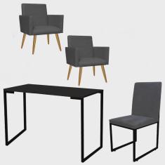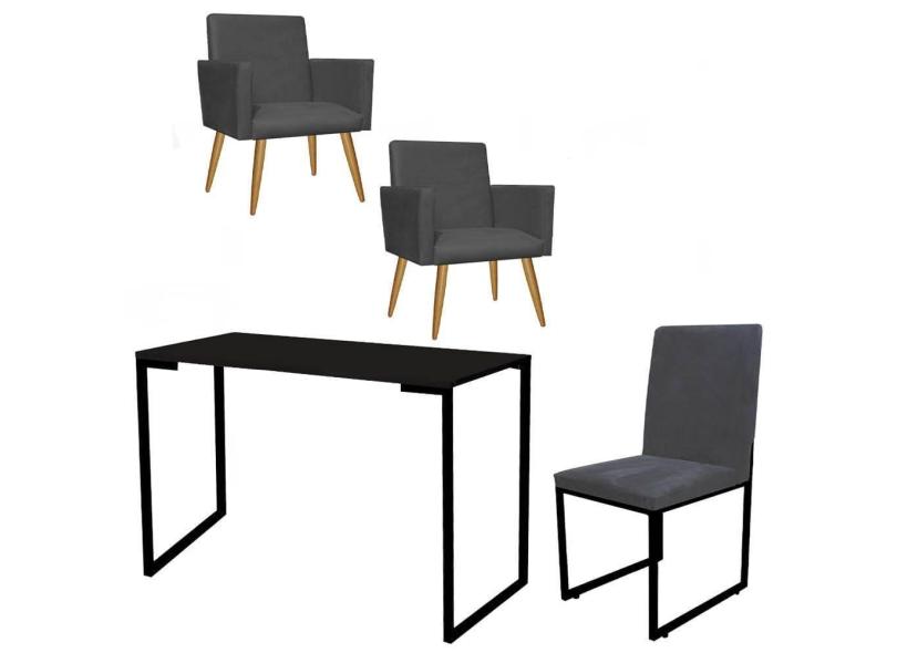 O menor preço encontrado no Brasil para Kit Escritório Stan 2 Poltronas com Cadeira e Mesa Industrial Tampo Preto Tecido Sintético Cinza - Ahz Móveis atualmente é R$ 1.439,90.