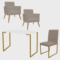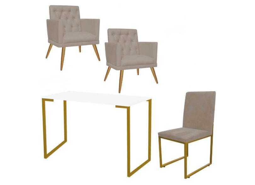 O menor preço encontrado no Brasil para Kit Escritório Stan 2 Poltronas Maria e Cadeira e Mesa Industrial Branco Dourado Corino Bege - Ahz Móveis atualmente é R$ 1.599,90.