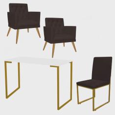 O menor preço encontrado no Brasil para Kit Escritório Stan 2 Poltronas Maria e Cadeira e Mesa Industrial Branco Dourado Corino Marrom - Ahz Móveis atualmente é R$ 1.599,90.