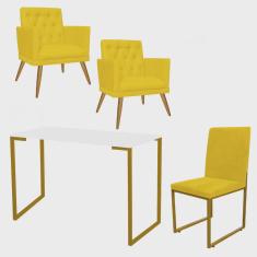 O menor preço encontrado no Brasil para Kit Escritório Stan 2 Poltronas Maria e Cadeira e Mesa Industrial Branco Dourado Suede Amarelo - Ahz Móveis atualmente é R$ 1.599,90.