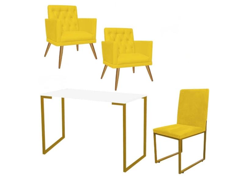 O menor preço encontrado no Brasil para Kit Escritório Stan 2 Poltronas Maria e Cadeira e Mesa Industrial Branco Dourado Tecido Sintético Amarelo - Ahz Móveis atualmente é R$ 1.599,90.