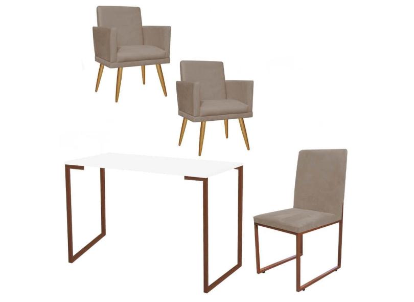 O menor preço encontrado no Brasil para Kit Escritório Stan 2 Poltronas Rodapé com Cadeira e Mesa Industrial Branco Bronze Suede Bege - Ahz Móveis atualmente é R$ 1.479,90.