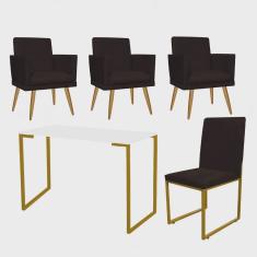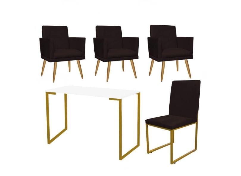 O menor preço encontrado no Brasil para Kit Escritório Stan 2 Poltronas Rodapé com Cadeira e Mesa Industrial Branco Dourado Tecido Sintético Marrom - Ahz Móveis atualmente é R$ 1.479,90.