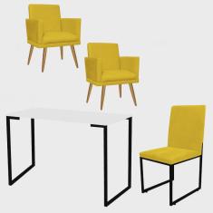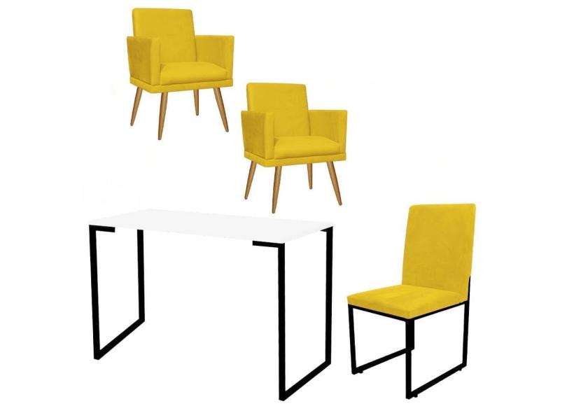 O menor preço encontrado no Brasil para Kit Escritório Stan 2 Poltronas Rodapé com Cadeira e Mesa Industrial Branco Preto Suede Amarelo - Ahz Móveis atualmente é R$ 1.479,90.
