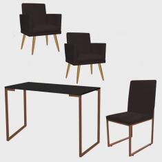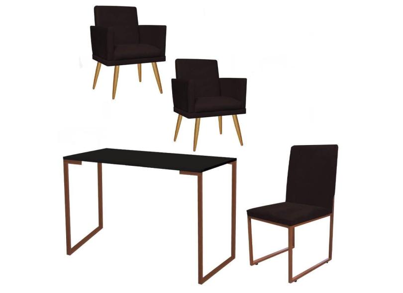 O menor preço encontrado no Brasil para Kit Escritório Stan 2 Poltronas Rodapé com Cadeira e Mesa Industrial Preto Bronze Suede Marrom - Ahz Móveis atualmente é R$ 1.479,90.