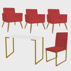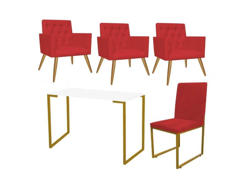 O menor preço encontrado no Brasil para Kit Escritório Stan 3 Poltronas Capitonê com Cadeira e Mesa Industrial Branco Dourado Corino Vermelho - Ahz Móveis atualmente é R$ 2.079,90.
