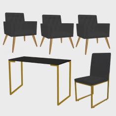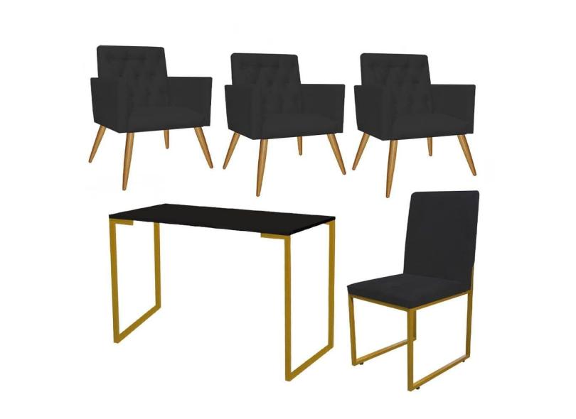 O menor preço encontrado no Brasil para Kit Escritório Stan 3 Poltronas Capitonê com Cadeira e Mesa Industrial Preto Dourado Tecido Sintético Preto - Ahz Móveis atualmente é R$ 2.079,90.