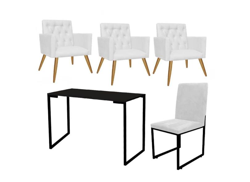O menor preço encontrado no Brasil para Kit Escritório Stan 3 Poltronas Capitonê com Cadeira e Mesa Industrial Tampo Preto Corino Branco - Ahz Móveis atualmente é R$ 2.079,90.