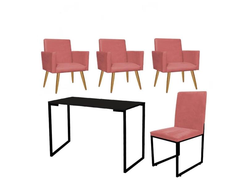 O menor preço encontrado no Brasil para Kit Escritório Stan 3 Poltronas com Cadeira e Mesa Industrial Tampo Preto Suede Rose Gold - Ahz Móveis atualmente é R$ 1.839,90.