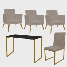 O menor preço encontrado no Brasil para Kit Escritório Stan 3 Poltronas Maria com Cadeira e Mesa Industrial Preto Dourado Tecido Sintético Bege - Ahz Móveis atualmente é R$ 2.079,90.