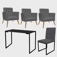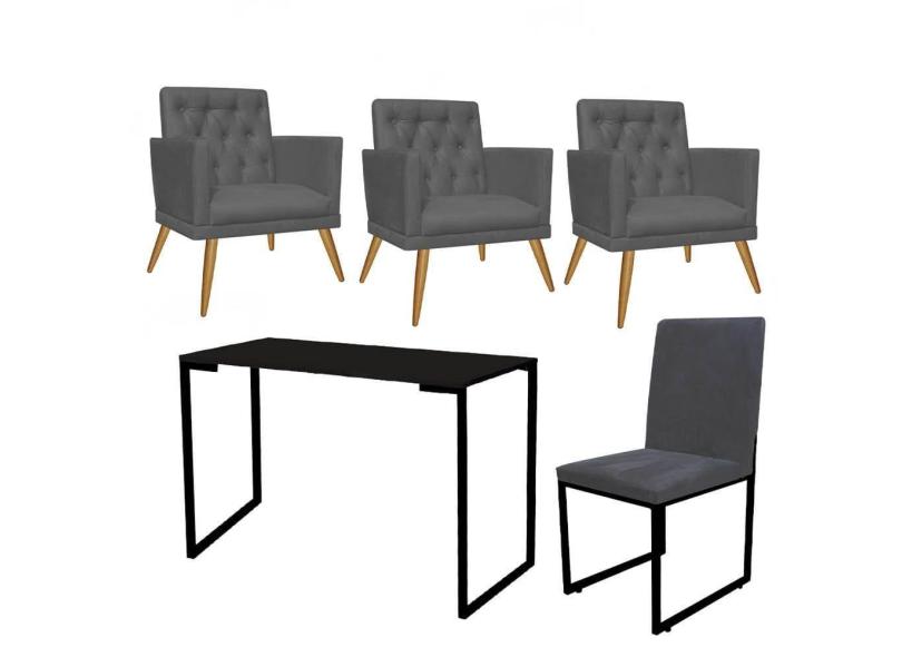 O menor preço encontrado no Brasil para Kit Escritório Stan 3 Poltronas Maria com Cadeira e Mesa Industrial Tampo Preto Suede Cinza - Ahz Móveis atualmente é R$ 2.079,90.