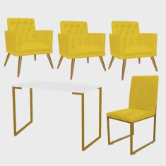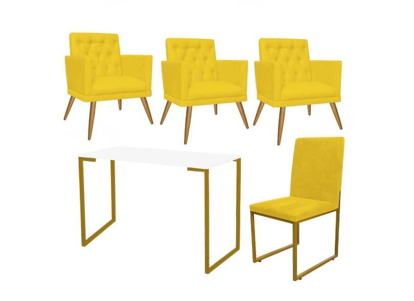 O menor preço encontrado no Brasil para Kit Escritório Stan 3 Poltronas Maria e Cadeira e Mesa Industrial Branco Dourado Tecido Sintético Amarelo - Ahz Móveis atualmente é R$ 2.079,90.