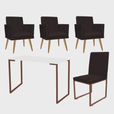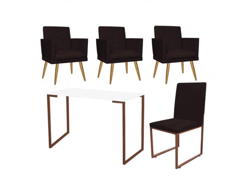 O menor preço encontrado no Brasil para Kit Escritório Stan 3 Poltronas Rodapé com Cadeira e Mesa Industrial Branco Bronze Suede Marrom - Ahz Móveis atualmente é R$ 1.899,90.