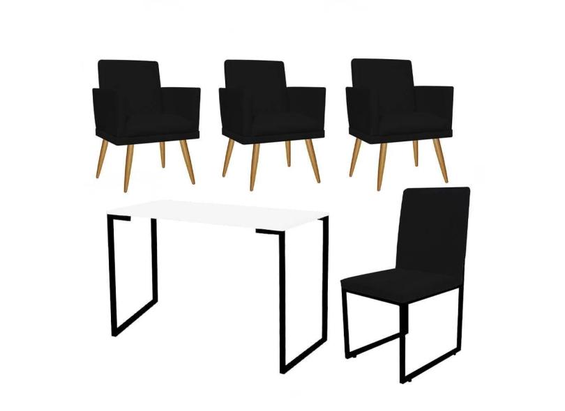 O menor preço encontrado no Brasil para Kit Escritório Stan 3 Poltronas Rodapé com Cadeira e Mesa Industrial Branco Preto Suede Preto - Ahz Móveis atualmente é R$ 1.899,90.