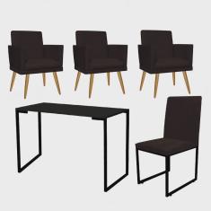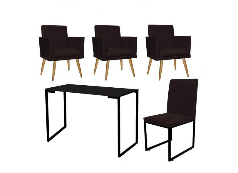 O menor preço encontrado no Brasil para Kit Escritório Stan 3 Poltronas Rodapé com Cadeira e Mesa Industrial Tampo Preto Suede Marrom - Ahz Móveis atualmente é R$ 1.899,90.