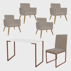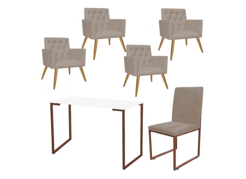 O menor preço encontrado no Brasil para Kit Escritório Stan 4 Poltronas Capitonê com Cadeira e Mesa Industrial Branco Bronze Corino Bege - Ahz Móveis atualmente é R$ 2.599,90.