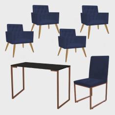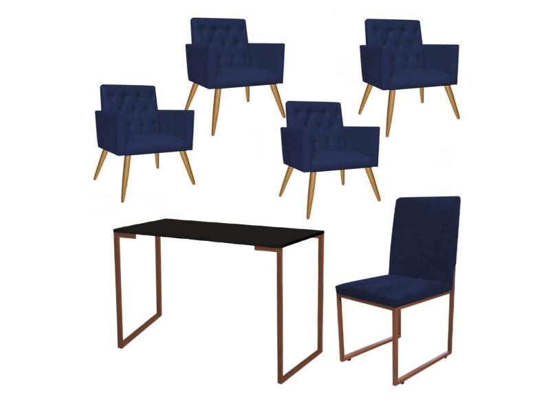 O menor preço encontrado no Brasil para Kit Escritório Stan 4 Poltronas Capitonê com Cadeira e Mesa Industrial Preto Bronze Suede Azul Marinho - Ahz Móveis atualmente é R$ 2.599,90.