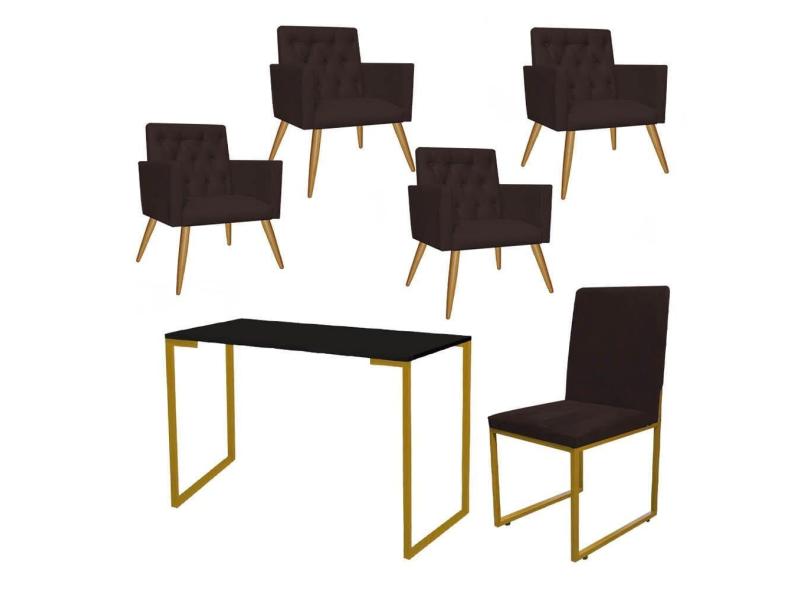 O menor preço encontrado no Brasil para Kit Escritório Stan 4 Poltronas Capitonê com Cadeira e Mesa Industrial Preto Dourado Corino Marrom - Ahz Móveis atualmente é R$ 2.599,90.