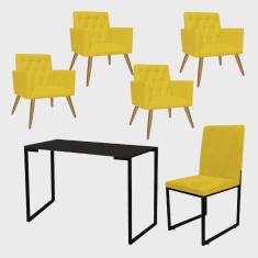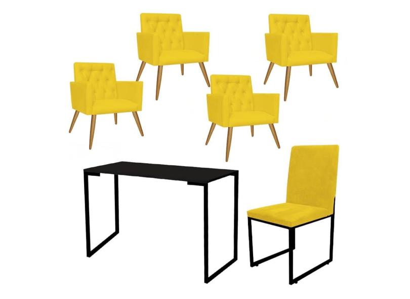 O menor preço encontrado no Brasil para Kit Escritório Stan 4 Poltronas Capitonê com Cadeira e Mesa Industrial Tampo Preto Tecido Sintético Amarelo - Ahz Móveis atualmente é R$ 2.599,90.