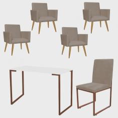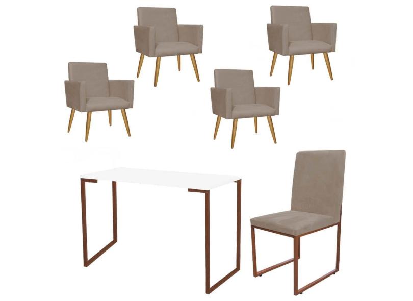 O menor preço encontrado no Brasil para Kit Escritório Stan 4 Poltronas com Cadeira e Mesa Industrial Tampo Branco Bronze Suede Bege - Ahz Móveis atualmente é R$ 2.239,90.