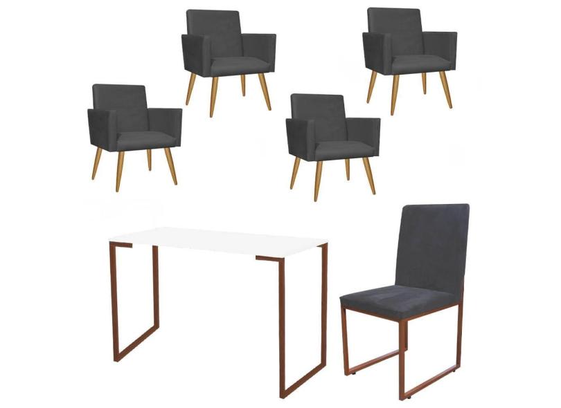 O menor preço encontrado no Brasil para Kit Escritório Stan 4 Poltronas com Cadeira e Mesa Industrial Tampo Branco Bronze Tecido Sintético Cinza - Ahz Móveis atualmente é R$ 2.239,90.