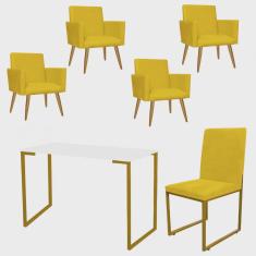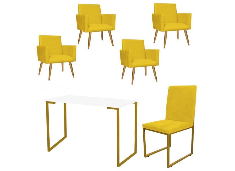O menor preço encontrado no Brasil para Kit Escritório Stan 4 Poltronas com Cadeira e Mesa Industrial Tampo Branco Dourado Tecido Sintético Amarelo - Ahz Móveis atualmente é R$ 2.239,90.