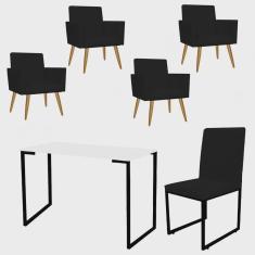 Kit Escritório Stan 4 Poltronas com Cadeira e Mesa Industrial Tampo Branco Preto Tecido Sintético Preto - Ahz Móveis