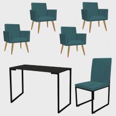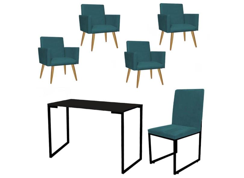 O menor preço encontrado no Brasil para Kit Escritório Stan 4 Poltronas com Cadeira e Mesa Industrial Tampo Preto Suede Azul Turquesa - Ahz Móveis atualmente é R$ 2.239,90.