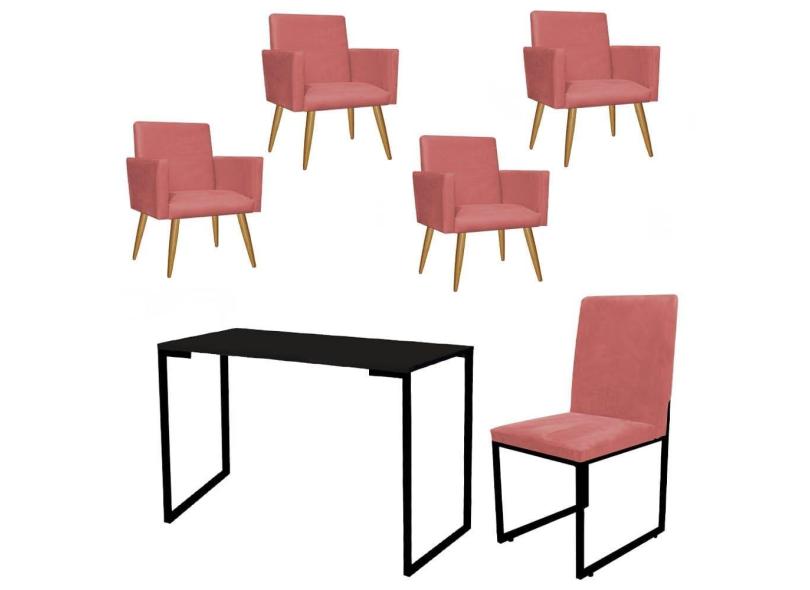 O menor preço encontrado no Brasil para Kit Escritório Stan 4 Poltronas com Cadeira e Mesa Industrial Tampo Preto Suede Rose Gold - Ahz Móveis atualmente é R$ 2.239,90.