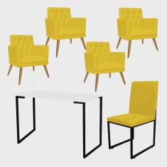 O menor preço encontrado no Brasil para Kit Escritório Stan 4 Poltronas Maria com Cadeira e Mesa Industrial Branco Preto Corino Amarelo - Ahz Móveis atualmente é R$ 2.599,90.