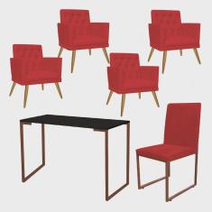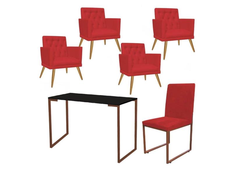 O menor preço encontrado no Brasil para Kit Escritório Stan 4 Poltronas Maria com Cadeira e Mesa Industrial Preto Bronze Suede Vermelho - Ahz Móveis atualmente é R$ 2.599,90.