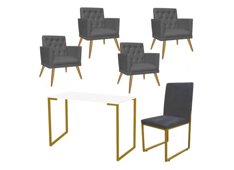 O menor preço encontrado no Brasil para Kit Escritório Stan 4 Poltronas Maria e Cadeira e Mesa Industrial Branco Dourado Suede Cinza - Ahz Móveis atualmente é R$ 2.559,90.