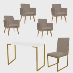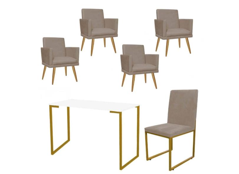 O menor preço encontrado no Brasil para Kit Escritório Stan 4 Poltronas Rodapé com Cadeira e Mesa Industrial Branco Dourado Corino Bege - Ahz Móveis atualmente é R$ 2.319,90.