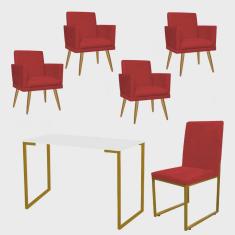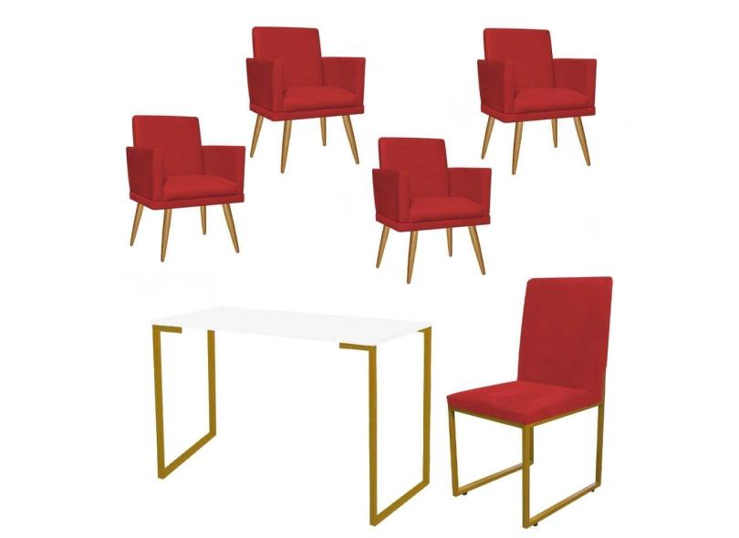 O menor preço encontrado no Brasil para Kit Escritório Stan 4 Poltronas Rodapé com Cadeira e Mesa Industrial Branco Dourado Tecido Sintético Vermelho - Ahz Móveis atualmente é R$ 2.319,90.