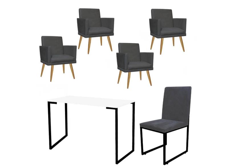 O menor preço encontrado no Brasil para Kit Escritório Stan 4 Poltronas Rodapé com Cadeira e Mesa Industrial Branco Preto Tecido Sintético Cinza - Ahz Móveis atualmente é R$ 2.319,90.