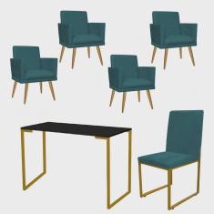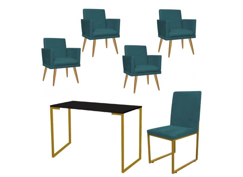 O menor preço encontrado no Brasil para Kit Escritório Stan 4 Poltronas Rodapé com Cadeira e Mesa Industrial Preto Dourado Suede Azul Turquesa - Ahz Móveis atualmente é R$ 2.319,90.