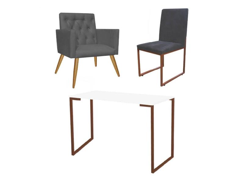 O menor preço encontrado no Brasil para Kit Escritório Stan Poltrona Capitonê com Cadeira e Mesa Industrial Branco Bronze Corino Cinza - Ahz Móveis atualmente é R$ 1.119,90.
